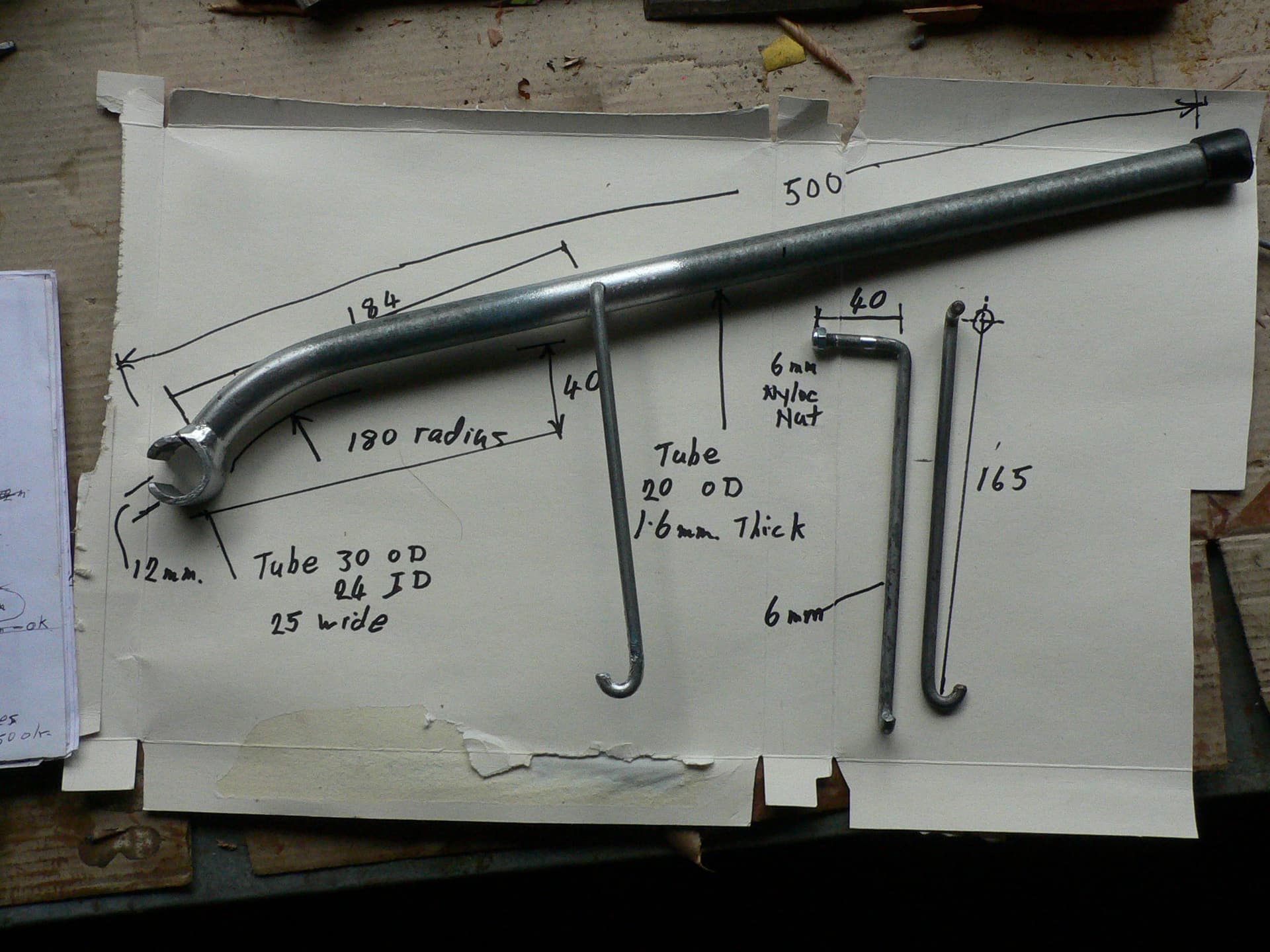 note that the 184 dimension is from the centre of hole for the arm to the inside of the tube