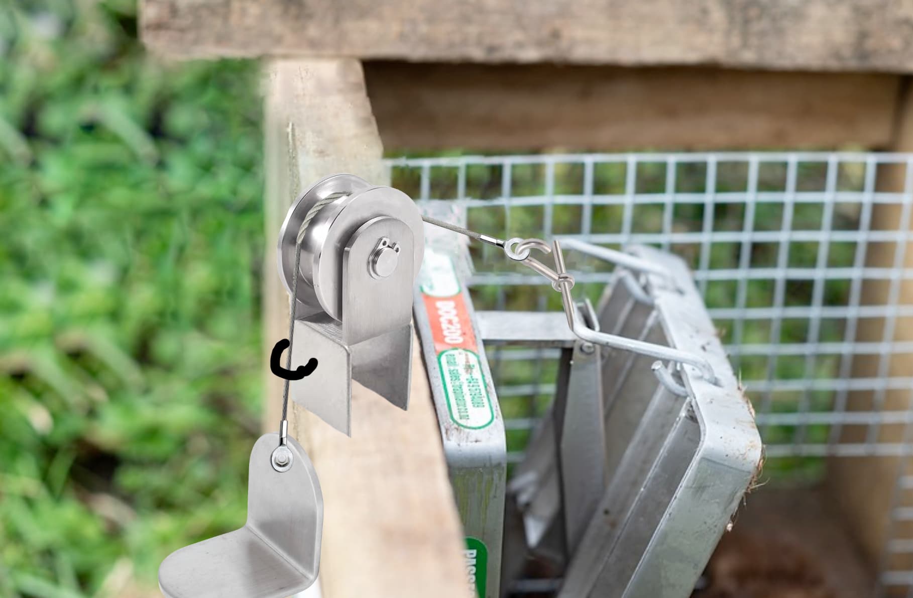 Also I’ve taken liberties with the cord length to match the image. it would obviously need to be long enough to reach the trap in it’s downward position and ideally the height of the box will be sufficient enough height to stand on the “foot pedal” and when it reaches the ground or before, the trap has been pulled up and set. this downward pressure on the trap is likely going to naturally want to turn the box over towards the direction your putting pressure on so might need to put a bit of wood or more elegant solution under the box, maybe another width of the box under the pedal side, so when you put your foot down it’s got the strong base required for it not to tip.